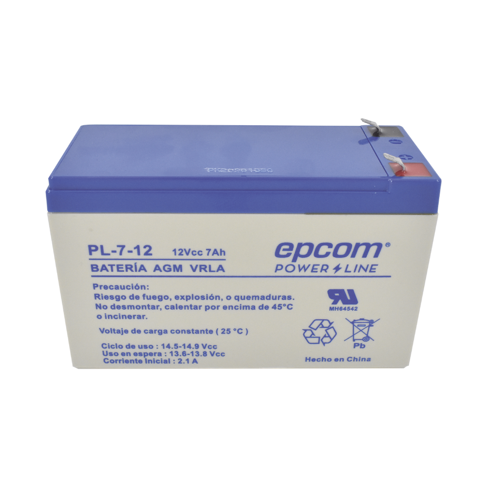 Batería 12 Vcc / 7 Ah / UL / Tecnología AGM-VRLA / Para uso en equipo electrónico Alarmas de intrusión / Incendio/ Control de acceso / Video Vigilancia / Terminales F1 / Cargador recomendado CHR-80.